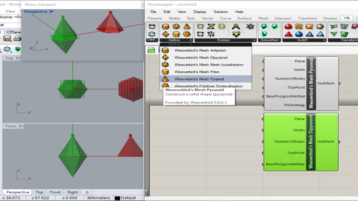 I will make two split parts, it makes me chose Weaverbird’s Mesh pyramid.
