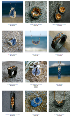 They used in one of these, the beach sand, ultramarine blue resin and metal pigments with a high-gloss polished finish… Also every piece has a unique material related to natural.