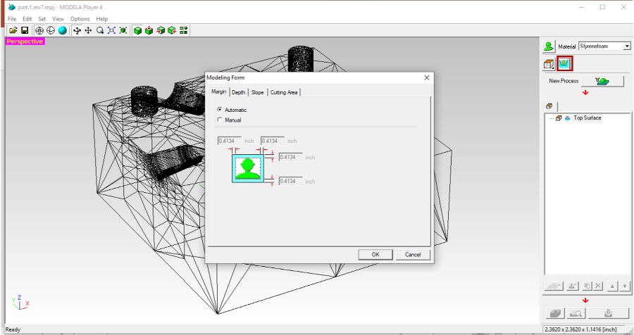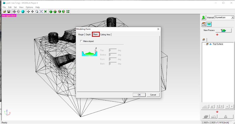 - Slop >> is an amazing option in Modela Player … exactly like Margin, actually Complete margin process, it makes slop to your box, to be easier when you split your molding stock from the box
