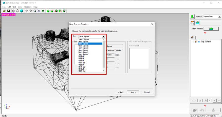 - Select your endmill you will use … for this process 6 mm square will be fine.