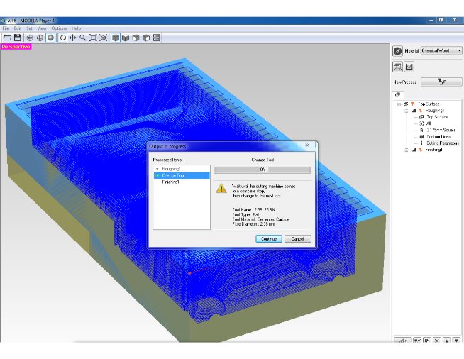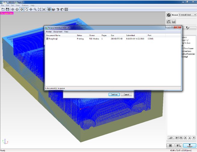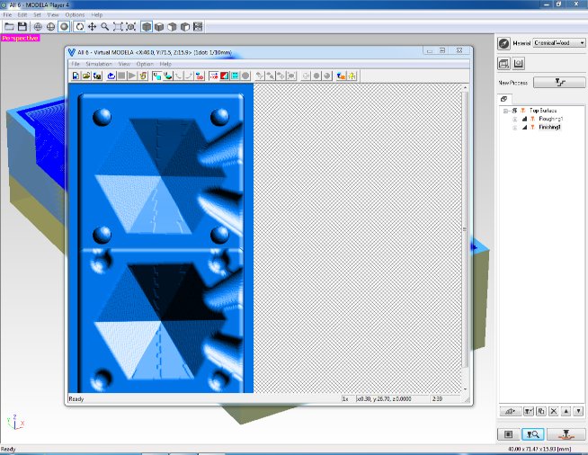 - Using Modela Player 4 Software that match with your machine. This software that simulate your process and generate your 3d model to G-code that send to your machine to mill your part… The machine may takes from 4 to 12 hours… maybe more or less depends on your design, the setting that you used and the endmills… So be patient with this stage.
