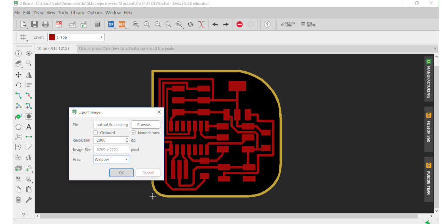 Then I prepared my images to mill my PCB. I Export them from Eagle as image with DPI 2000 and monochrome.