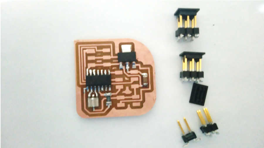 I started with attiny44 then the resonator, resistor and voltage regulator.