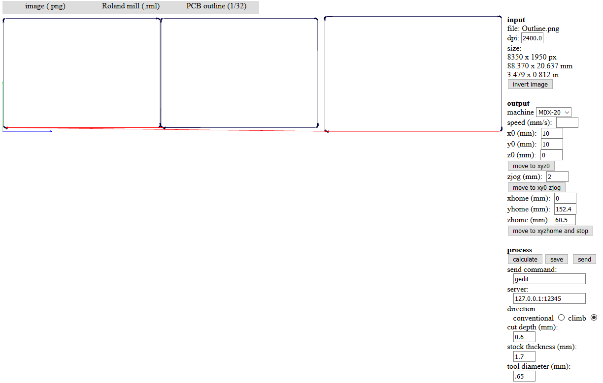 From the fab modules, the dimension of my board about 92*20.6 mm … and my stock here is 94mm … I want to be in the safe side, So I need to make some edits to reduce the width again.