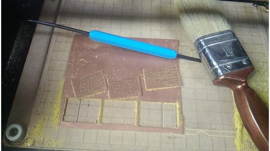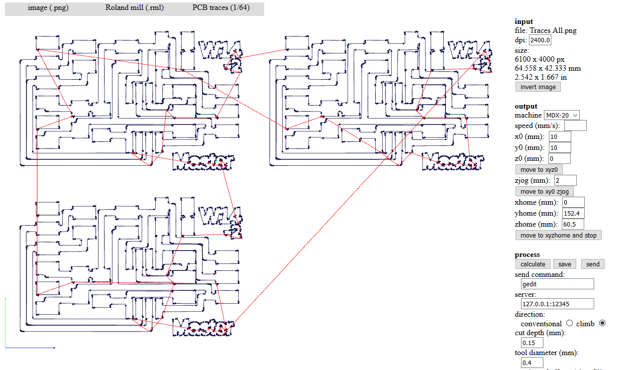 Then I made some edit that Mahmoud Abo Elnaga learned me before in advanced maker diploma… we can reduce the tool dimeter ‘with limit’ in fab modules to calculate the whole board… This issue happened because the two board is very closed from each other … so the tool path can’t define the two different colors between them… So when we reduce the tool dimeter we helps the tool path to see the whole board.