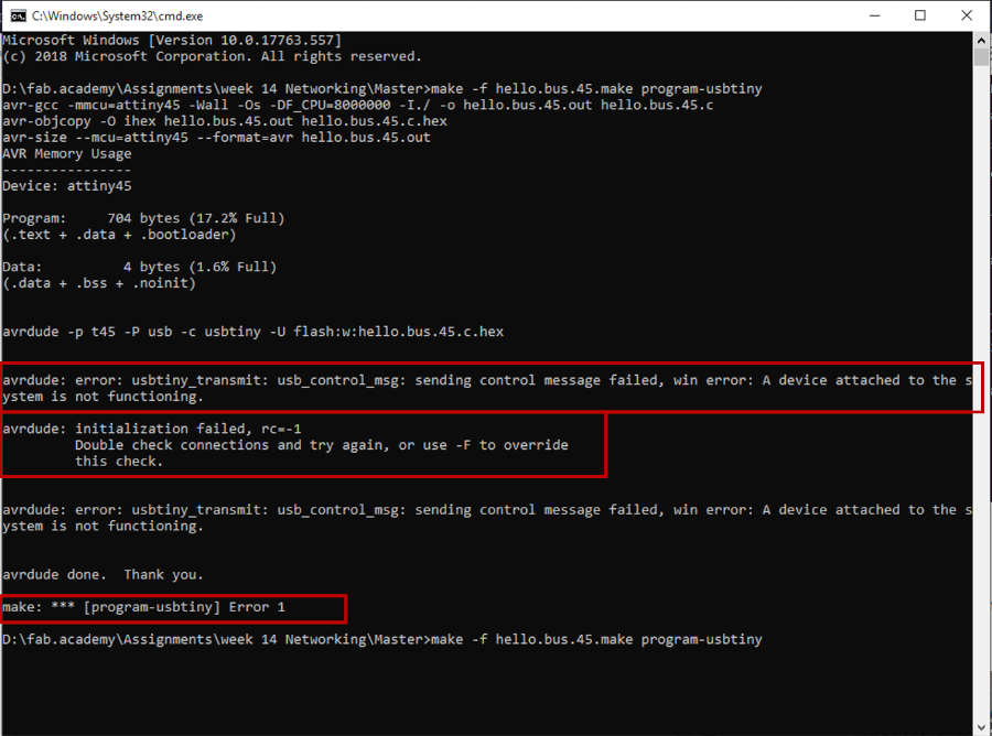 I will fabricate my boards again, because I tried before to de-solder the attiny45 … but it’s so hard also I don’t sure if it will work again after heating or not.