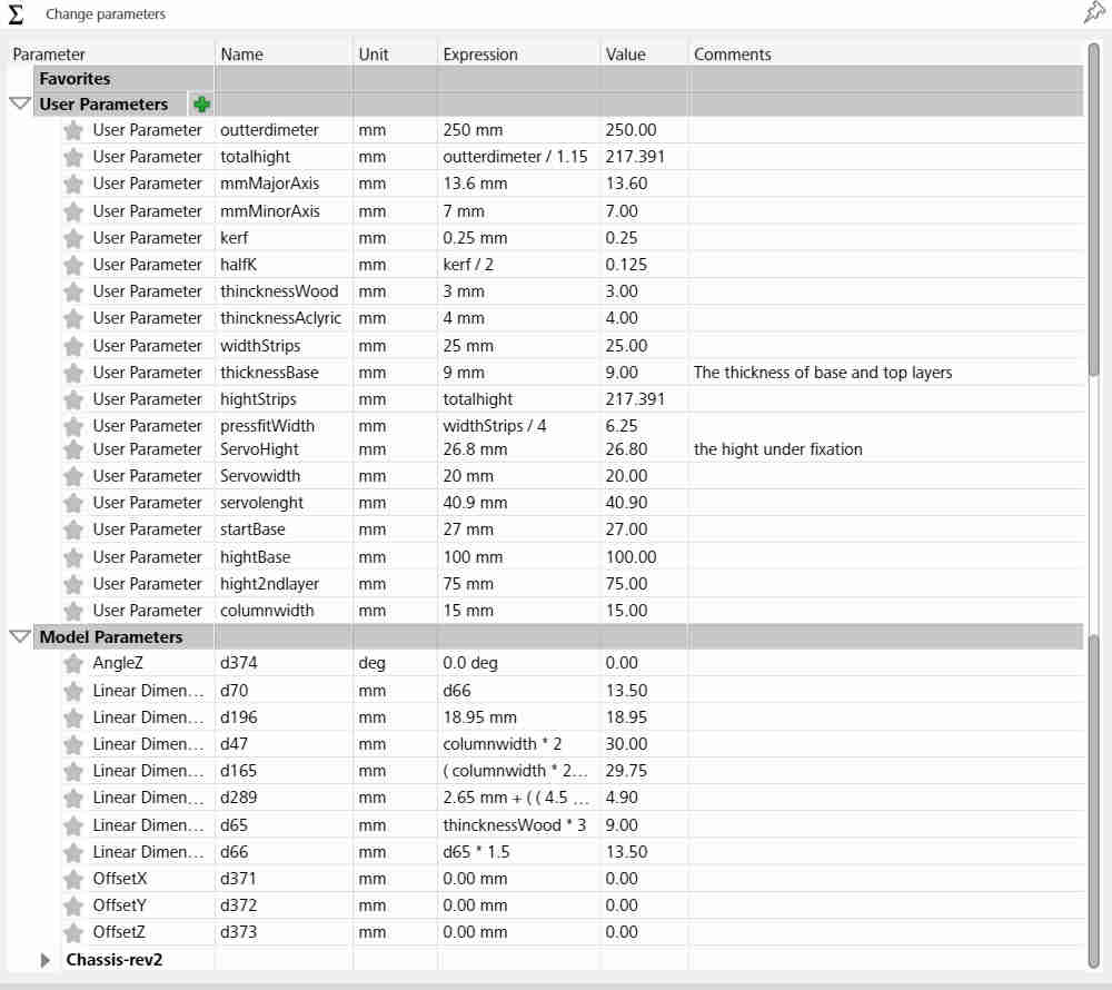 - The first step before I start drawing my design, the parameters… I add all parameters that I will use and through design process I edit and add new parameters that I need.