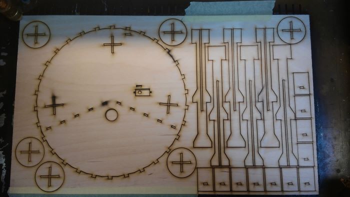 - The first step, I perfect to start with, is testing all my press fit parts with different speeds, power and the focus of laser. When I reached to the default settings, I start cutting all my parts.