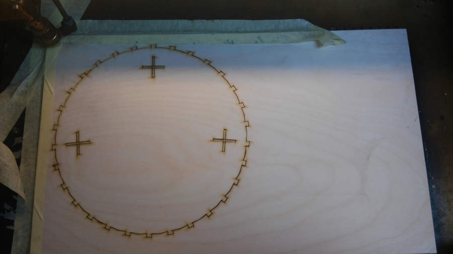 We have two variables with our laser cut process… One of them the wood issue … just one sheet 30*50cm, the thickness of sheet is different from point to point, it reach to 1mm!! The second issue is the plate, the plate isn’t flat… So, after a lot of trial with this machine, I reached to, I have to fix my sheet exactly like PCBs in Roland mill… Also the result is not satisfied and all my designs are damaged but this is the best solution in our case!