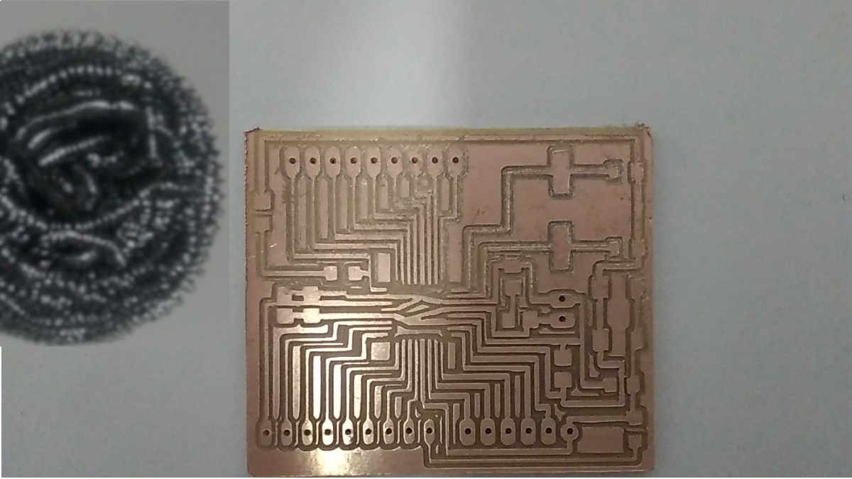 The right half side is the result after finishing fabrication … That’s because the speed and endmills that we used… the left side after we cleaned the PCB.