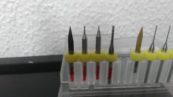 - The first step, we used the V endmill, its dimeter is 0.4 mm ‘the first one in the previous picture’ in the traces process.