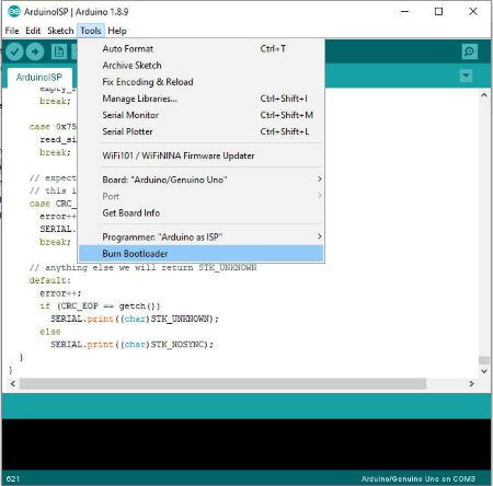 Tools > Burn Bootloader