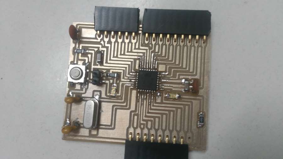 So, I have to do one of these boards that includes one of microcontrollers ‘Atmega family’ and program it with our programmer that we made in the first week of electronics.