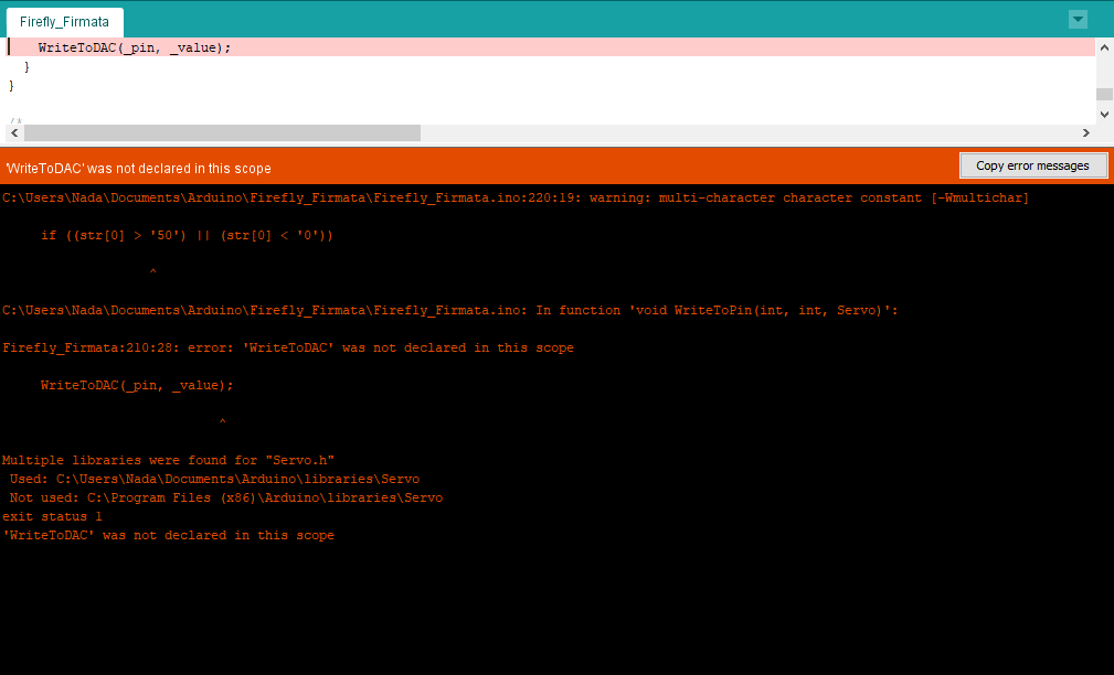 Firefly Firmata Error¶