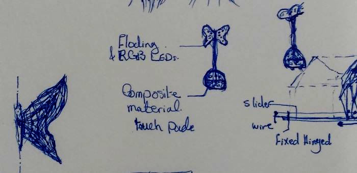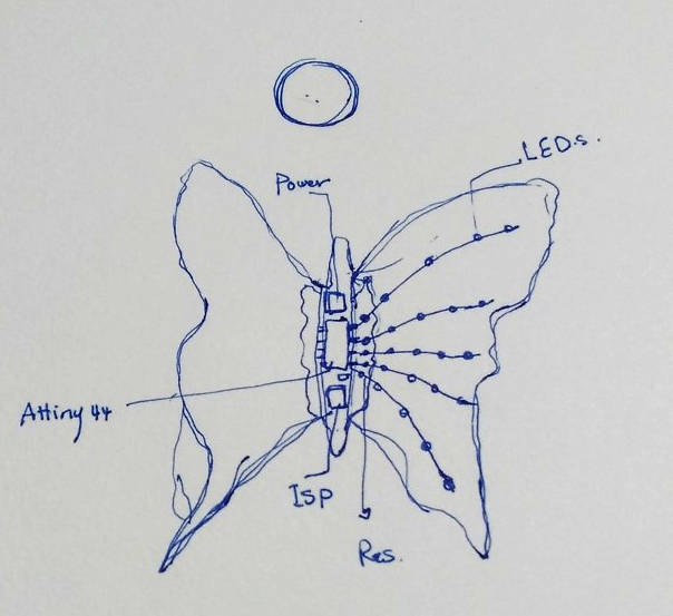 Then I back to the third idea to make a flexible copper butterfly with LED and move its wings.
