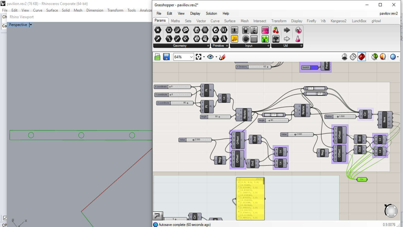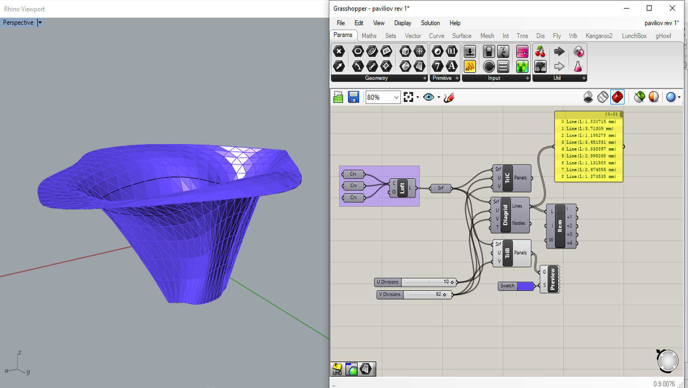 So, I opened Grasshopper and started to trail some shapes. I think to make a pavilion in the maker space in our FabLab, I think it would be nice. We have a large area with green area. So the multi-colors with sunlight in the environmental space would be n!ce…