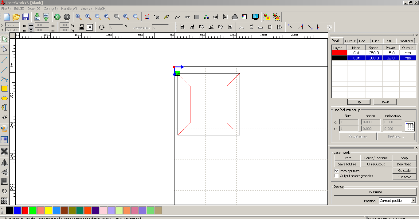 I used a different pattern that I have been drawn before, used different power and speed to reach the default with our machine.