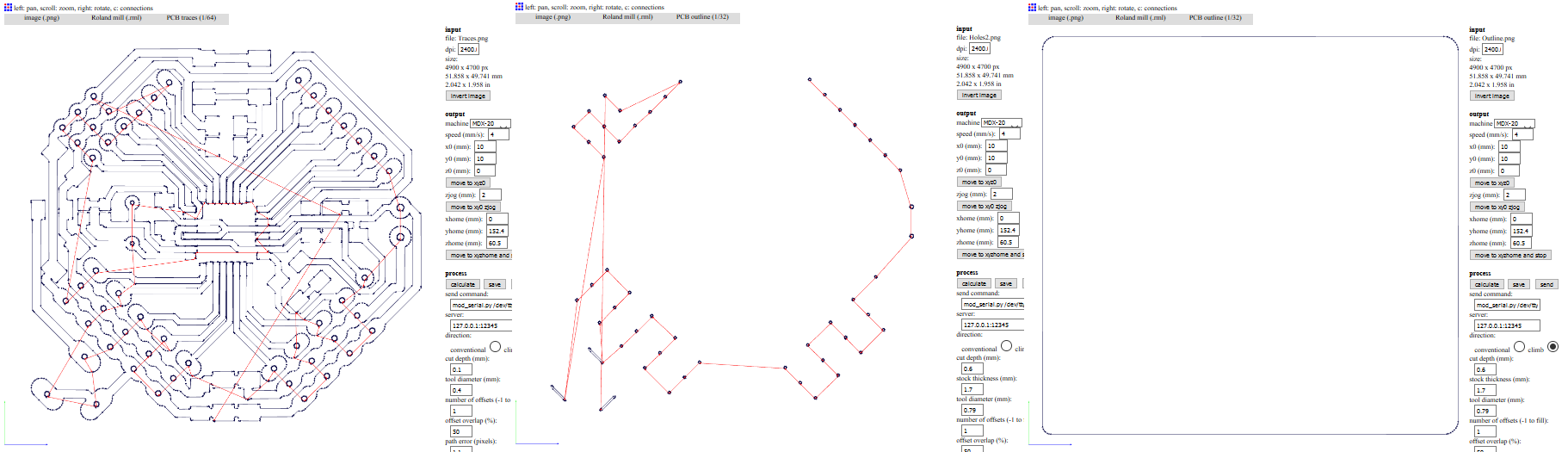 We have to make sure of all traces will be milling. Also, the holes will be cut and the outline border will be cut as the dimension board.