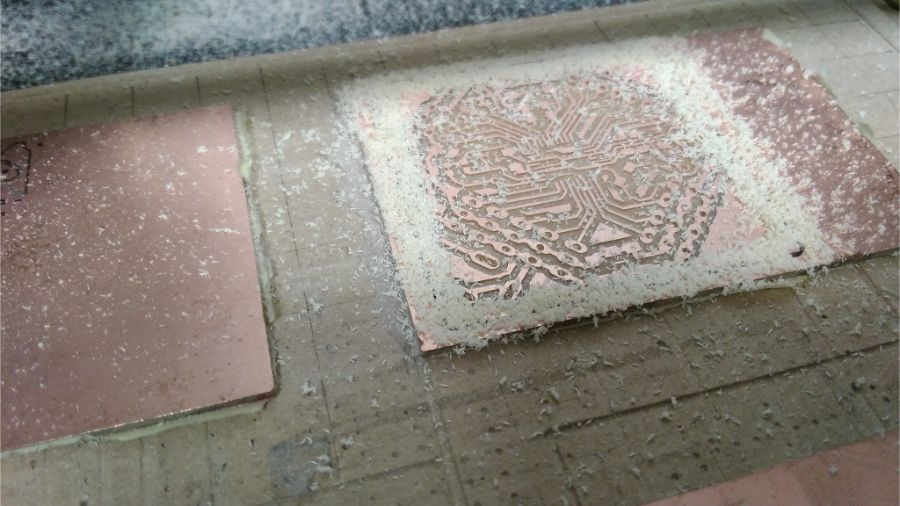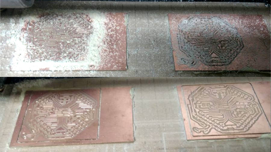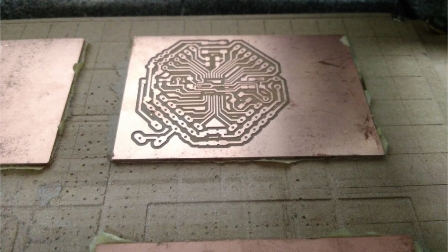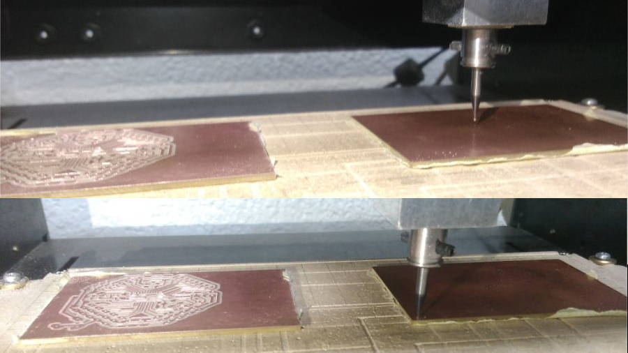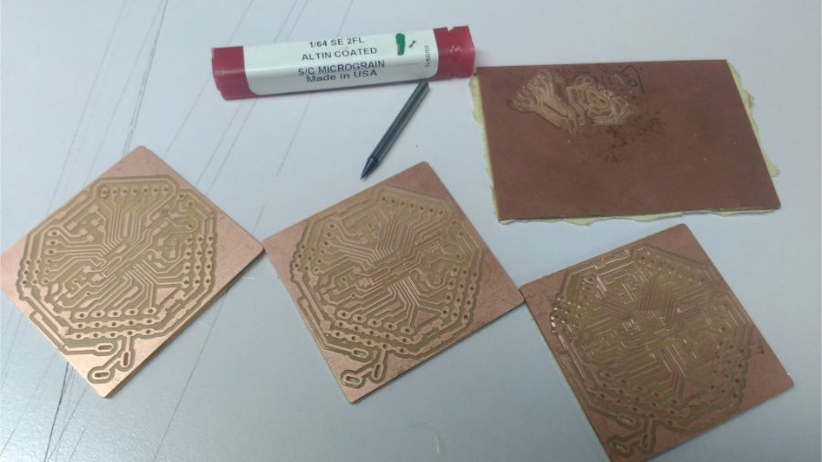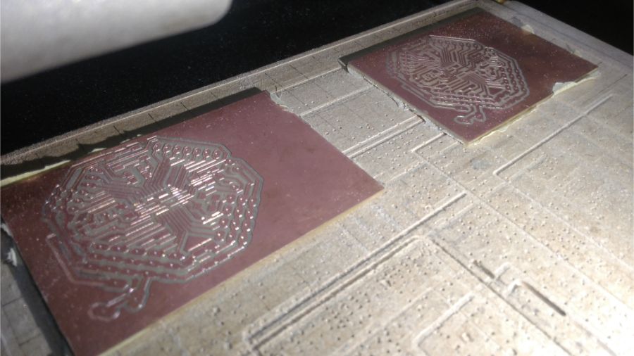 So, I started again with a new board… I decided to make the same strategy, as I have been fabricated my three boards in Networking and Communications week. That, if we will fabricate more than one board, we can fix all boards and make every process for all boards at the same time. To save the time of changing endmills and set the Z position.