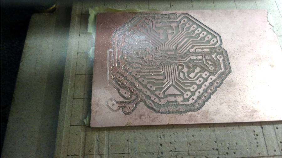 • This is the third board, I decided to make the traces process for this PCB also before I change the endmill.