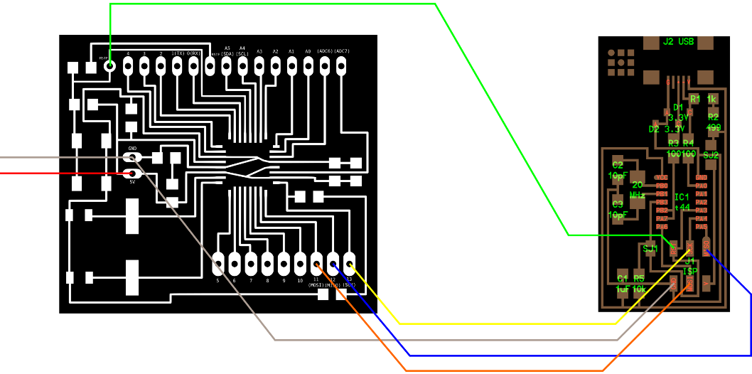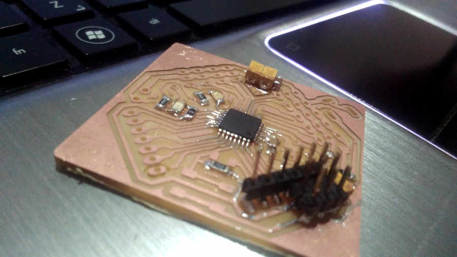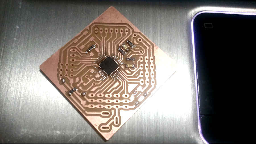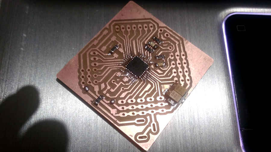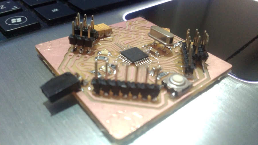 The distance between the pins of the atmega is very close and the 1/64 endmill can’t fabricate this traces …