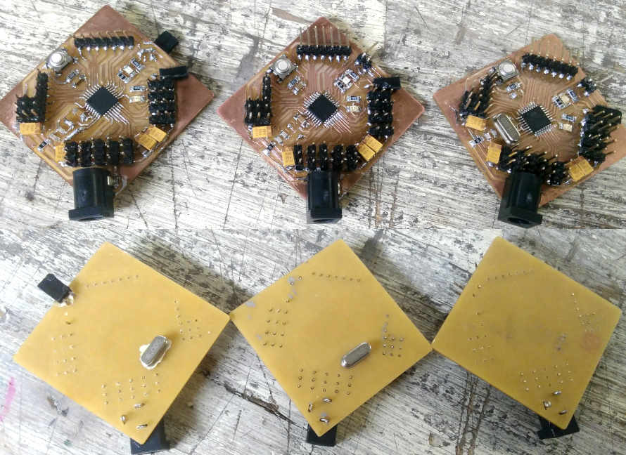 So I stopped thinking in this point, I have to start… I decided to back to atmega328 and I will make three boards.