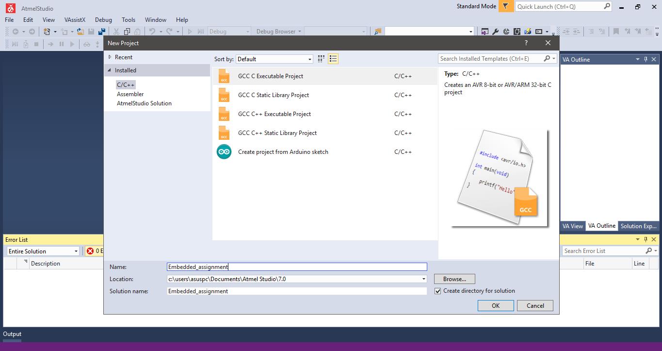 I selected GCC C Executable Project
