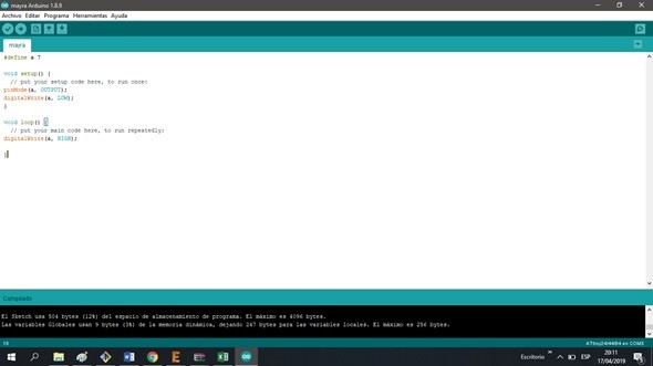 After that I made the code on the Arduin IDE,the arduino programming language is based on LANGUAGE C ++ and test the board. Finally, I clicked on Tools->Burn Bootloader and waited until it finished