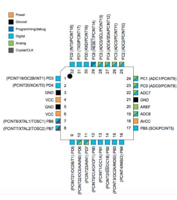 I researched a microcontroller, in this case the ATmega328p,you can download the datasheet here
