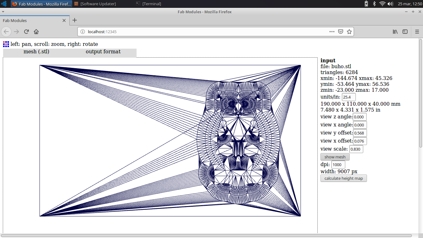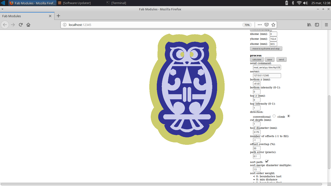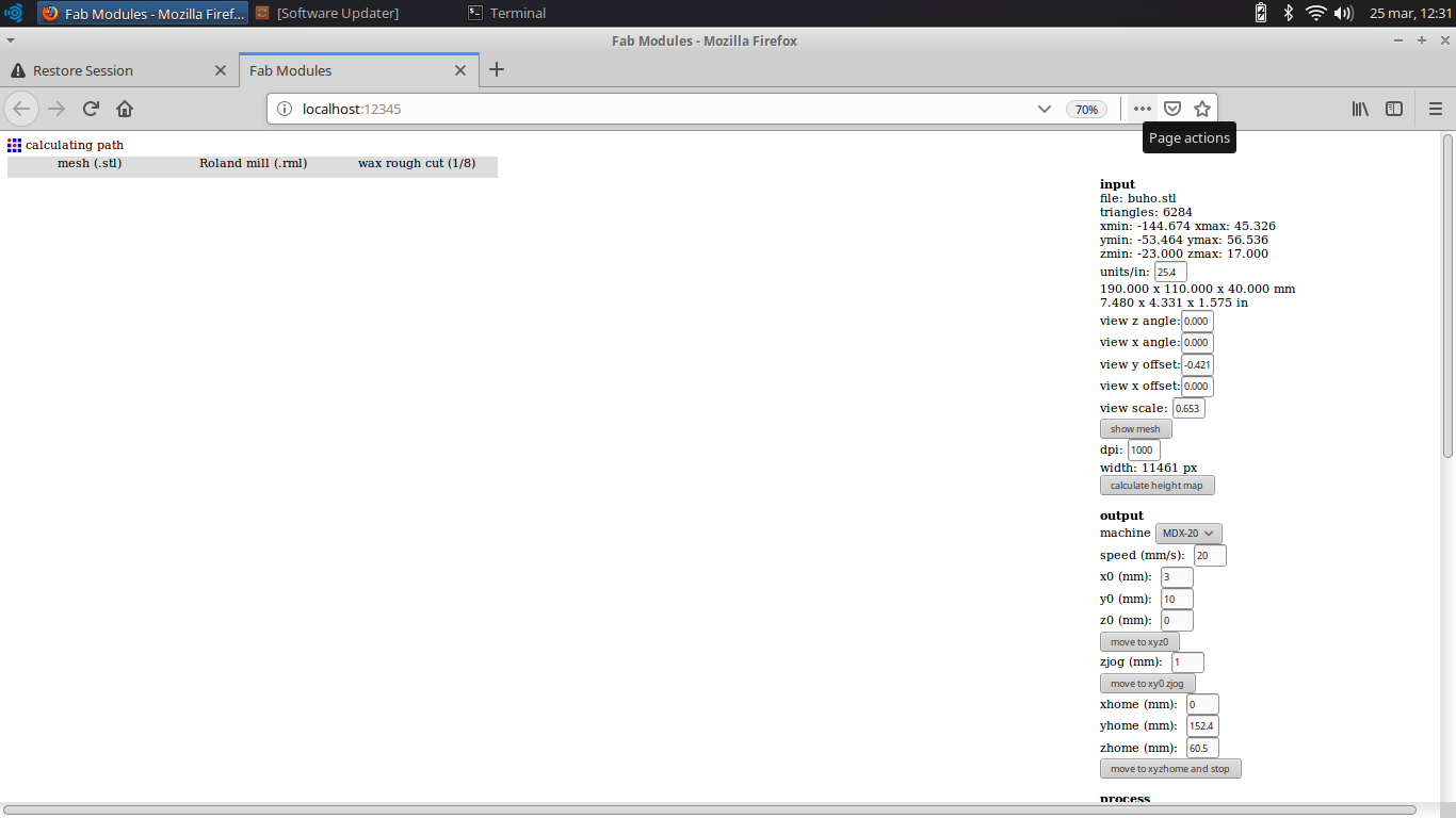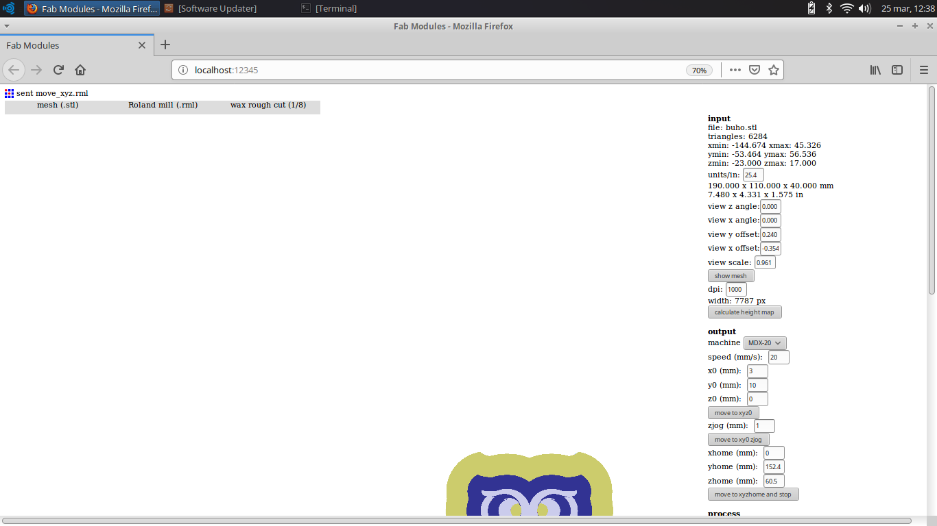 I opened the Fab Modules program, I configured the stl file and I indicated the machine model and the scale,