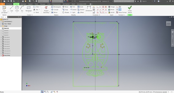 I designed in Autodesk Inventor, I used some options of the inventor like: Slot, Polygon, Rectangle to be able to reach the desired figure.