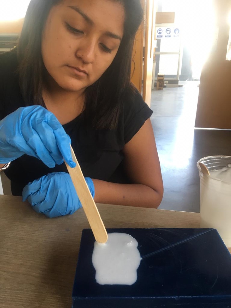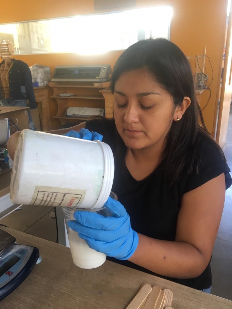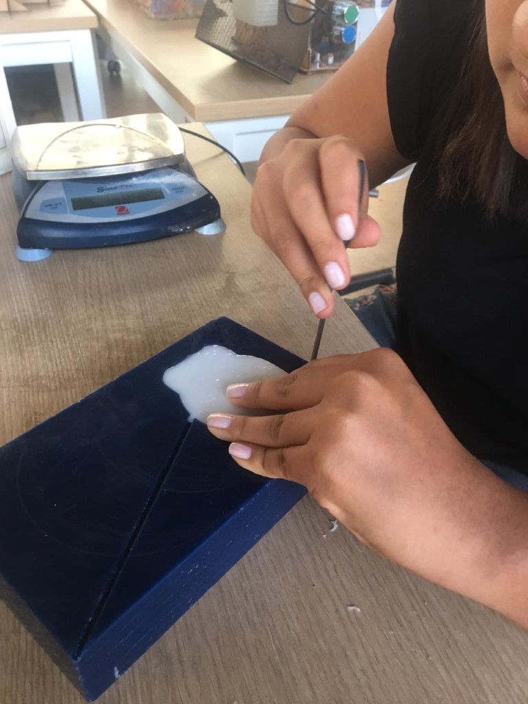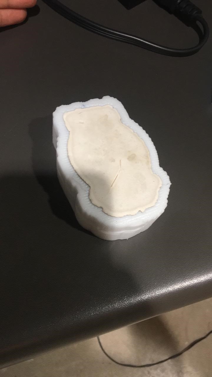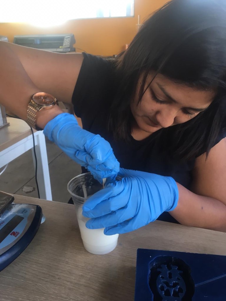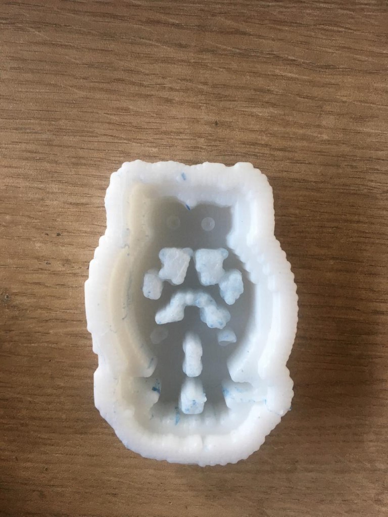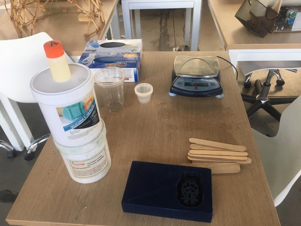 We empty the silicone mixture to the wax mold and wait 20 minutes to obtain the silicone mold.