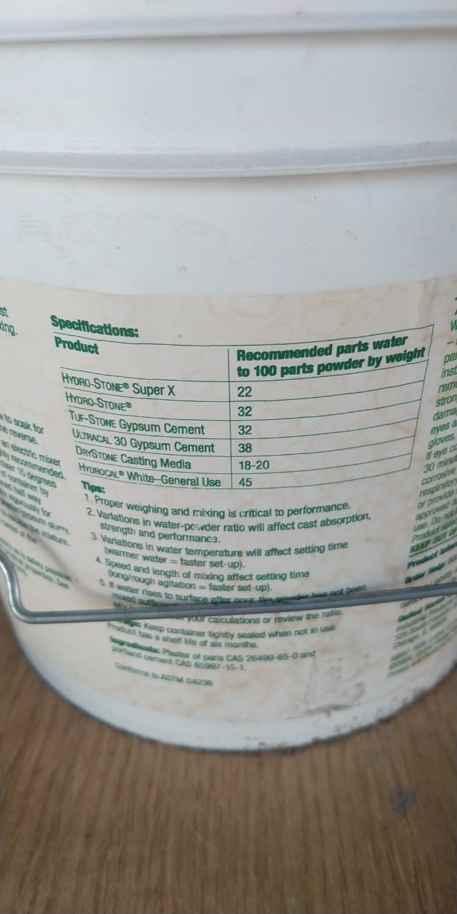 Then, I calculated 22% of the total cement to be able to mix it with water, according to the references indicated in the cement pot.