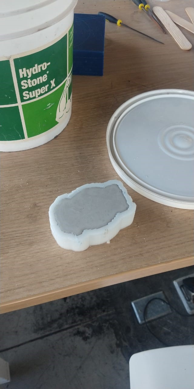 We empty the cement mixture into the mold and wait 4 hours to obtain the object.