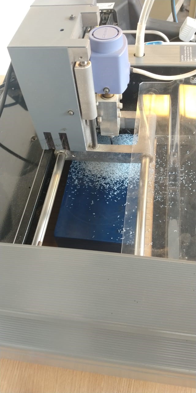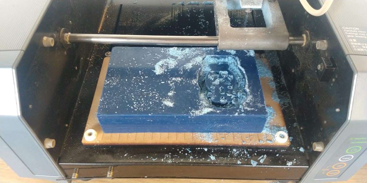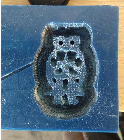 Then, using a vacuum cleaner removes the residue from the block and proceeds to remove the milled design.