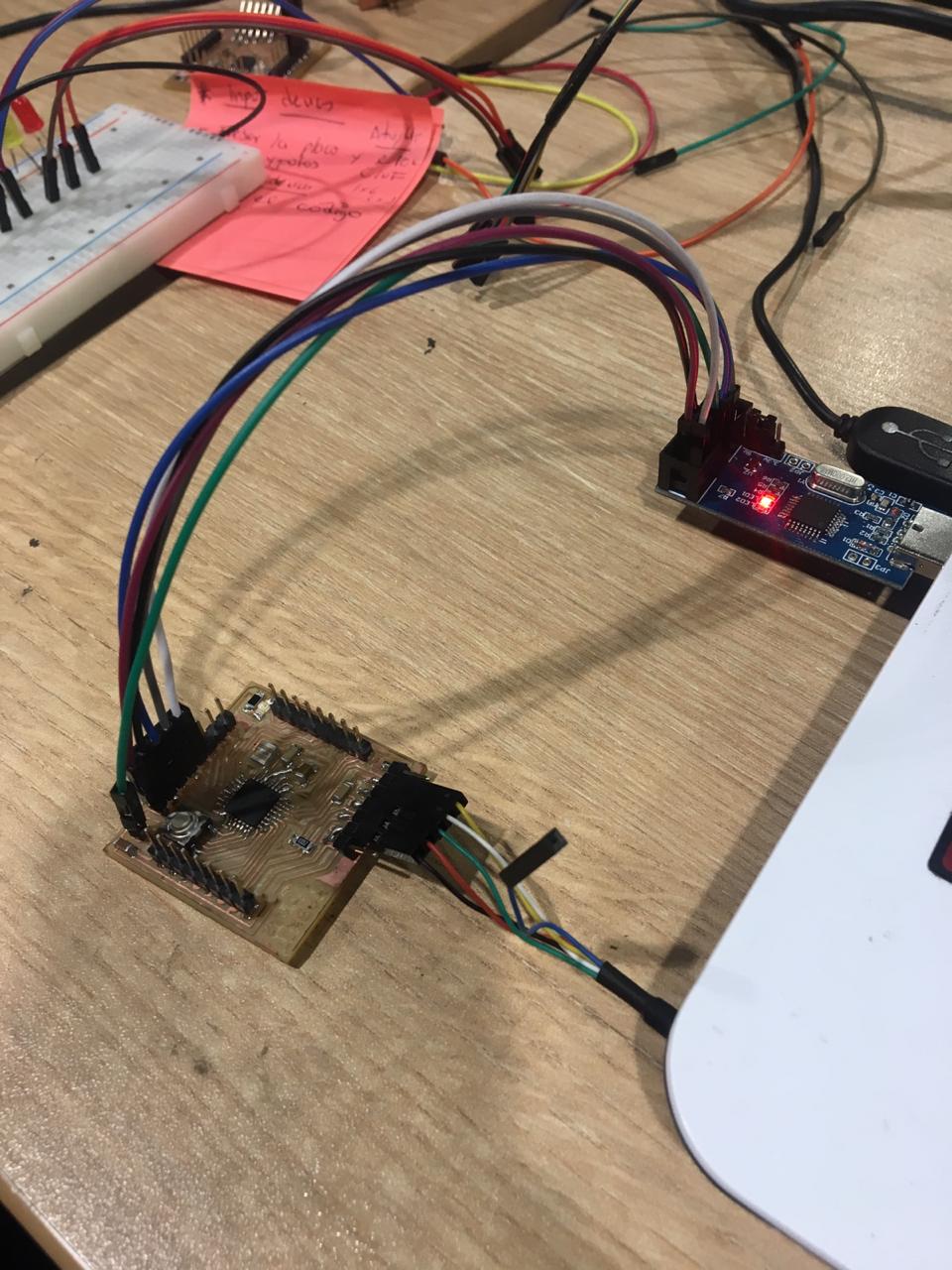 It was possible to record the programming on the boards but at the time of sending the serial communication it did not send due to a problem of bad contact or not continuity in the traces, so I opted to make another plate
