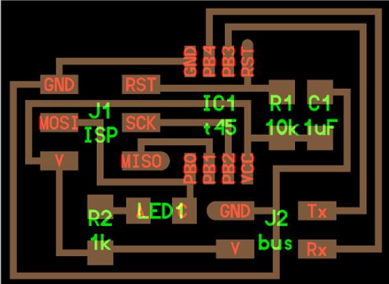 First I downloaded the png files, milled the board and soldered the components. I build 1 bridge and 2 nodes. The result is shown: