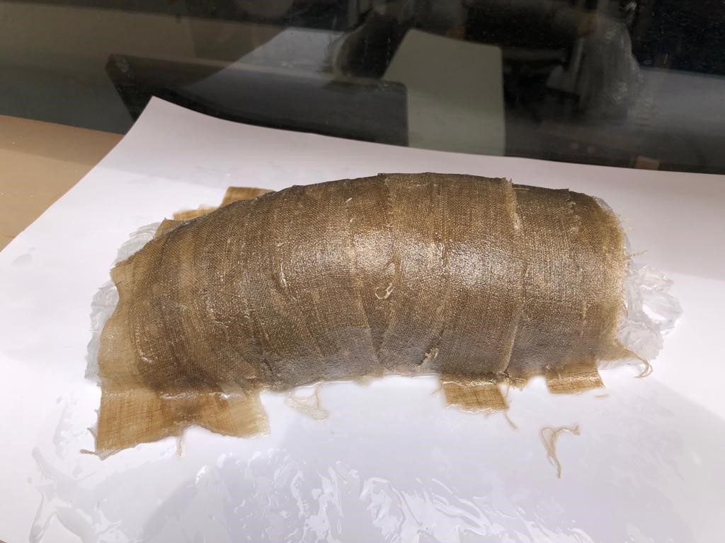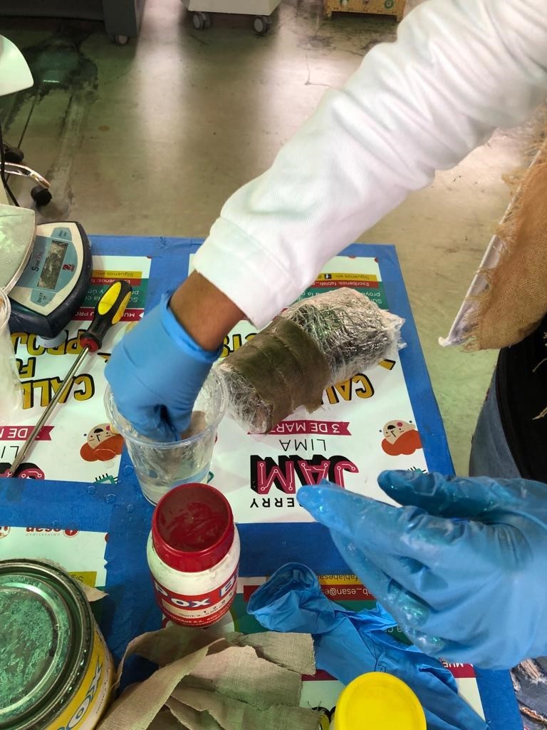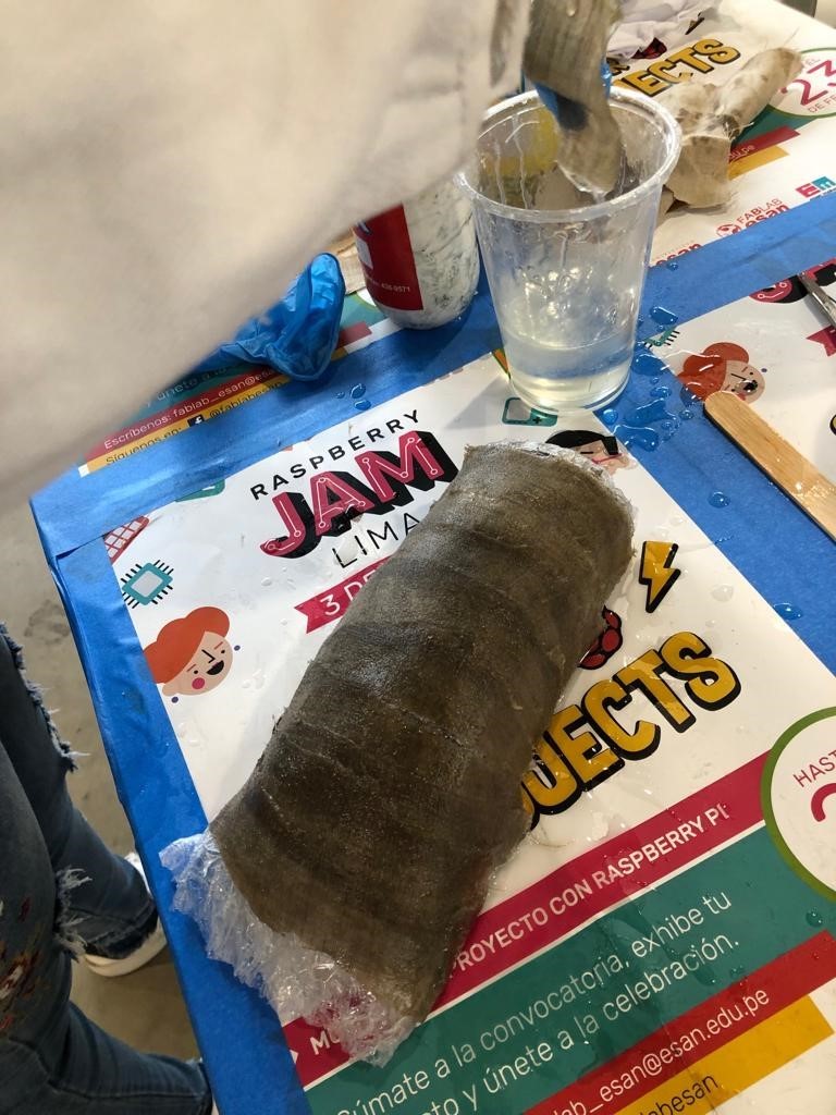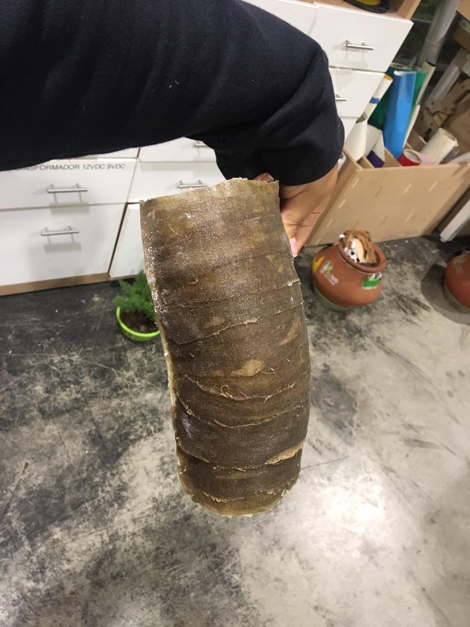 I cut jute fabric and I had to dip it with the mixture to put it in the mold