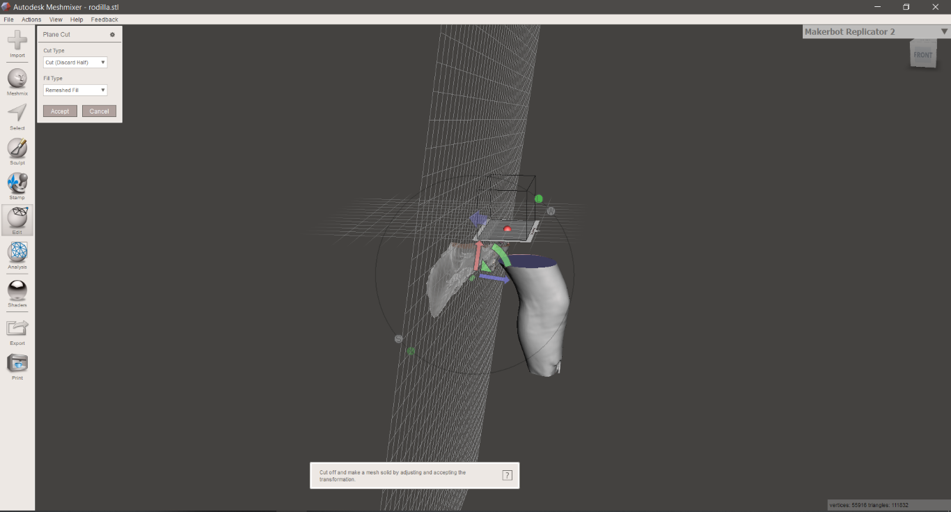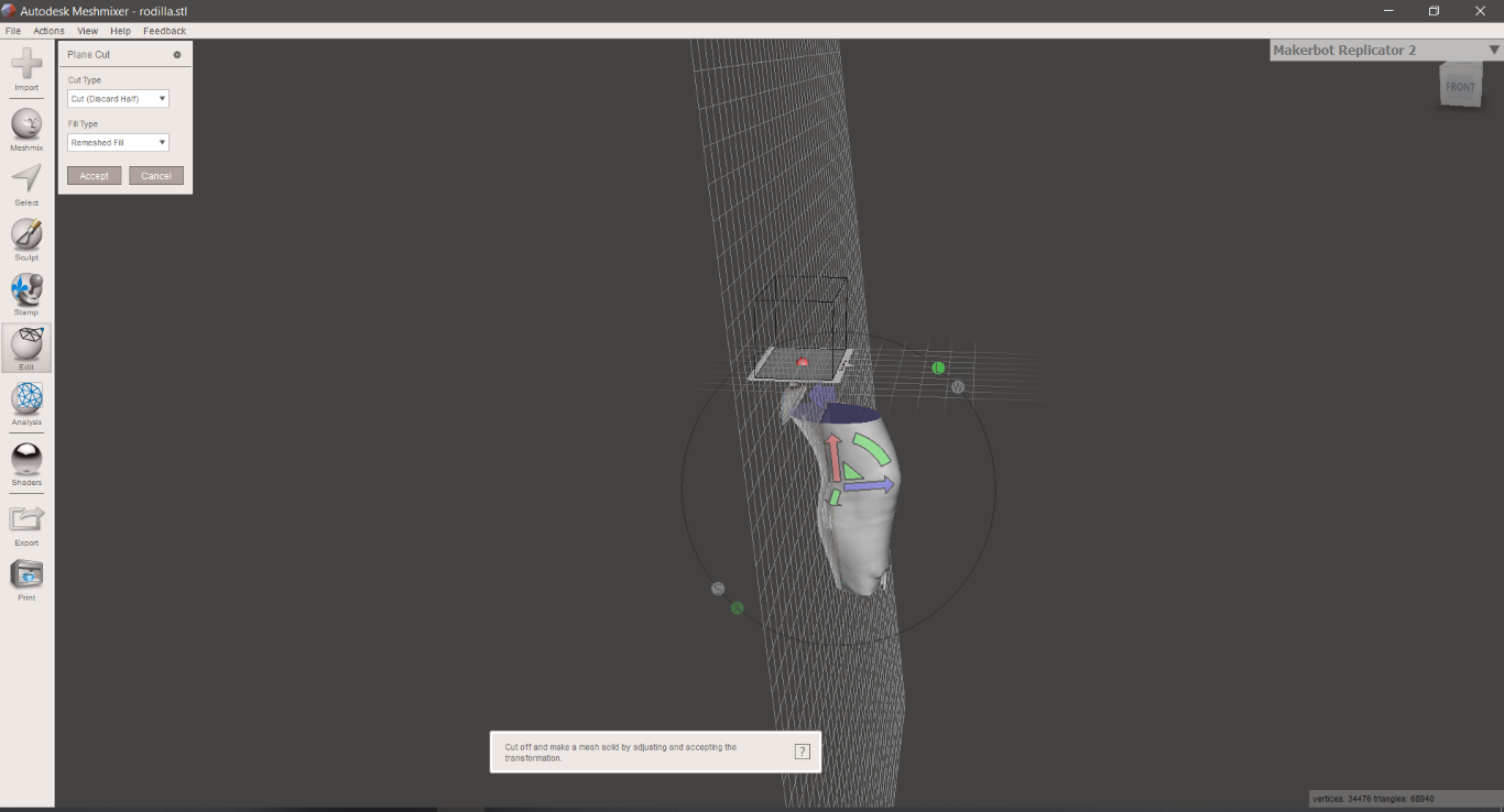 Then I used the Autodesk MeshMixer program to be able to cut the figure and have only the part of the knee