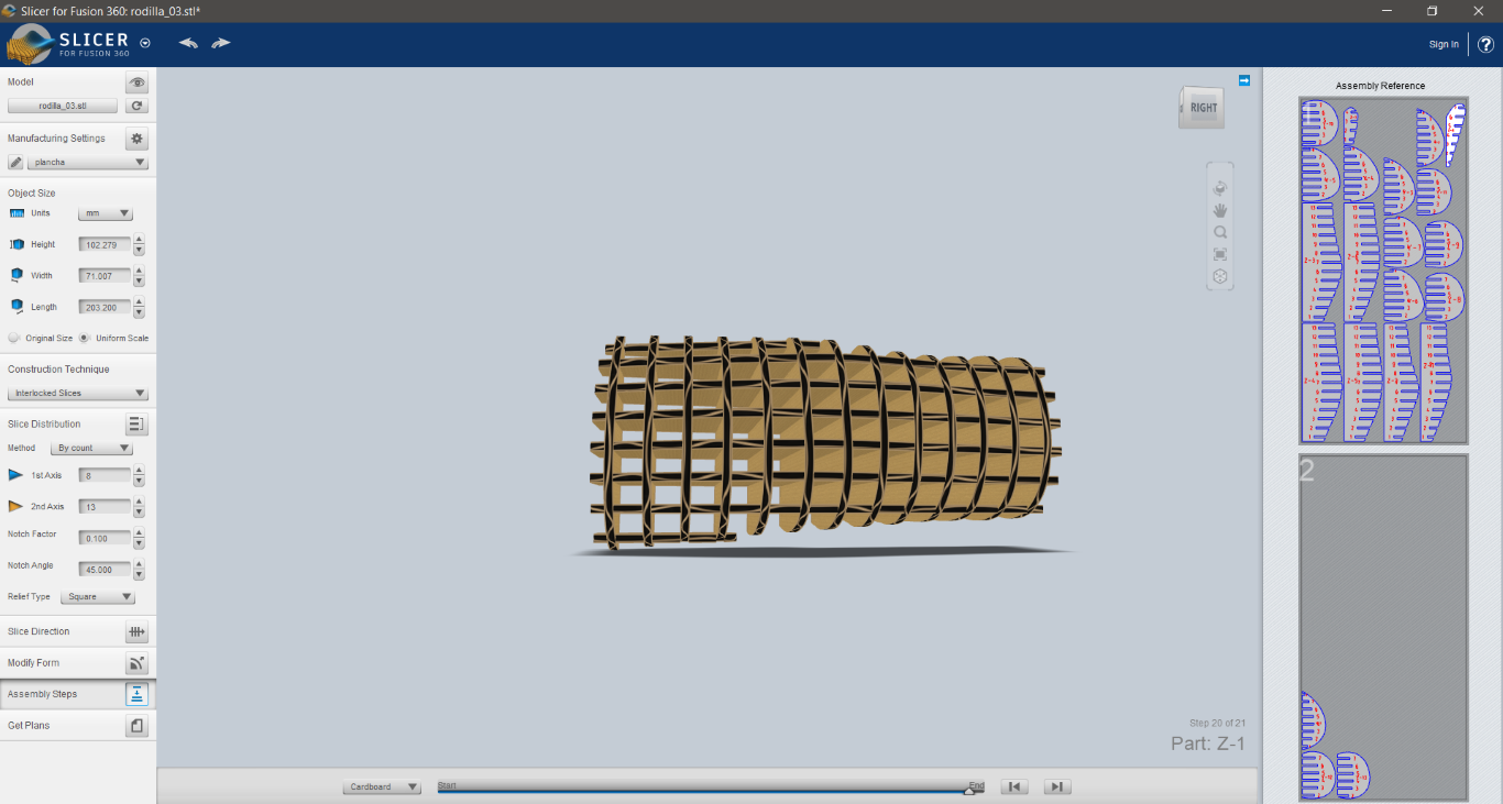 Then I used Slicer for Fusion 360 program to be able to generate the mold (I used the option Interlocked Slicer) and cut in the mdf 3mm.