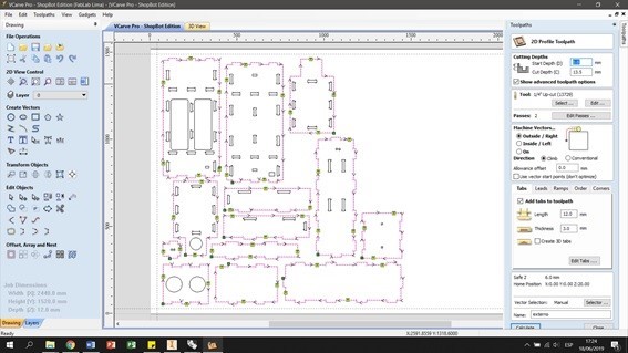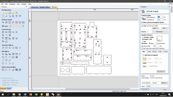 Then I use the program VCARVE PRO, which allows you to load your designs by exporting the face in DXF or DWG format, and configure the milling characteristics. For the operation I use a 1/4 inch.