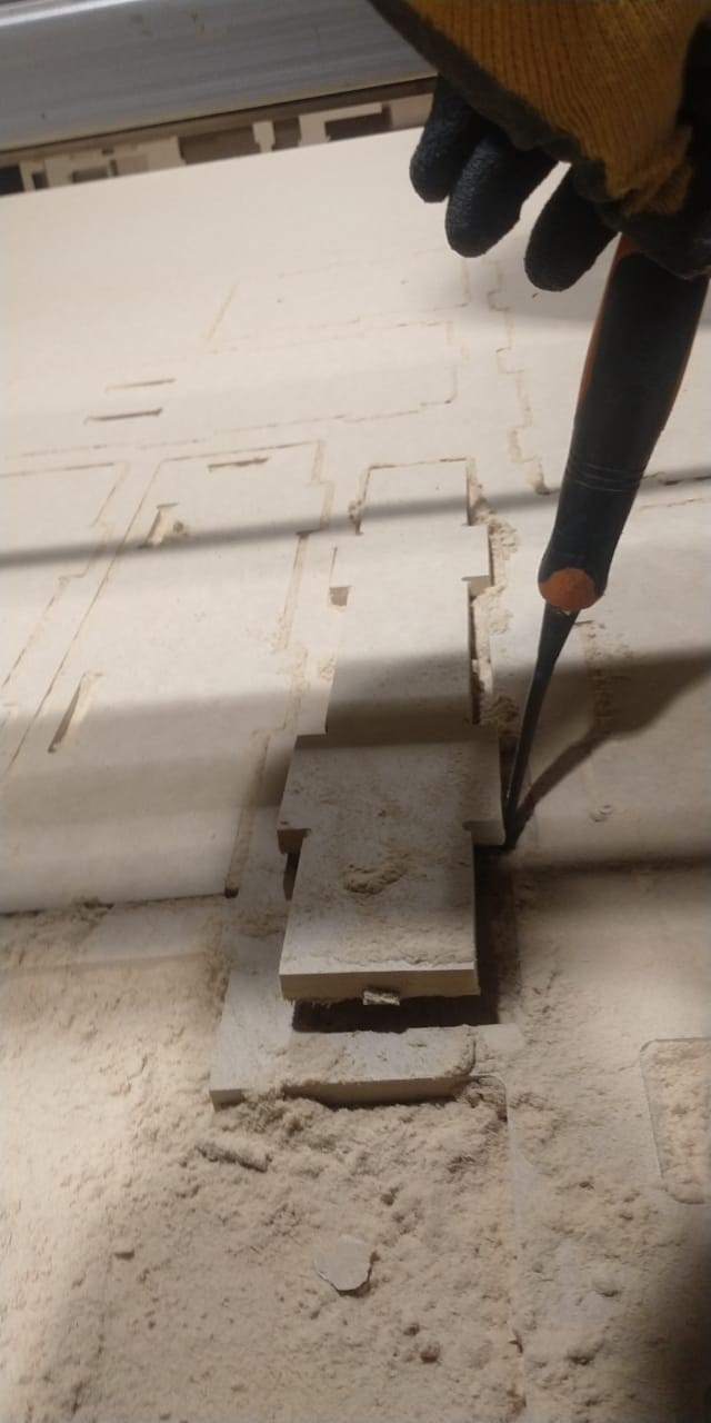 In the second configuration I use the POCKET option that allows you to make a recess of the material or “cajeado” according to the depth that is designated in the design, In this case apply 5 mm of depth to simulate the blocks of wood.