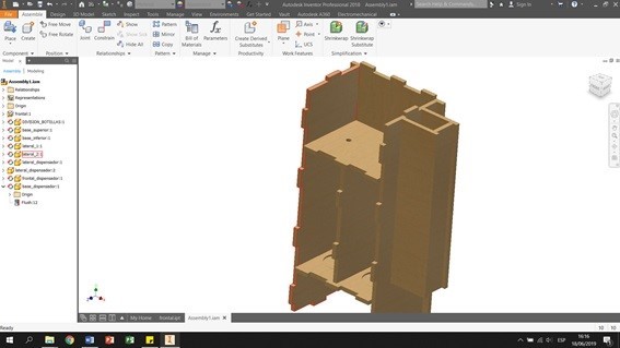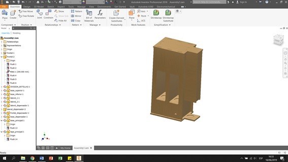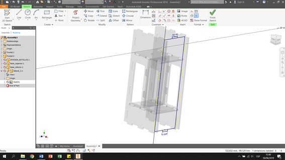 I use Autodesk Inventor to design the structure of the machine,I used as a reference the measurement of a glass bottle.