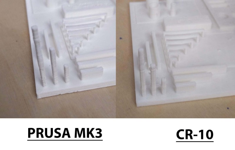we printed the same filed in both machines to see the quality that they can get. The archive that we used is a "torture test" a special piece designed to force the machine and thest things like definition, overhang and precision