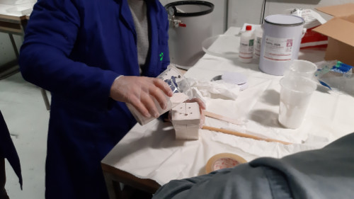 There are two types of Prusa in the Lab, the MK2 and the MK3. This is an excelent printer, very precise and easy to use (you only need to load the file and press a button to start the whole process). the bed is specially remarkable, it makes very easy to take off the printed pieces and doesn't need any extra solutions to fix the piece as masking tape or glue.