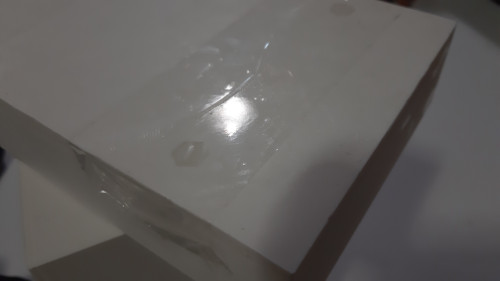 Prepare materials in the bed of the desktop milling machine > Used doubled faced tape. Recommended to clean and put the board in the center of the bed to reduce milling depth differences
