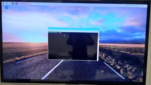 After setting up the Raspberry and turn it on, it immediately showed the desktop, as the Raspbian version we installed was "Raspbian Stretch with desktop and recommended software".
