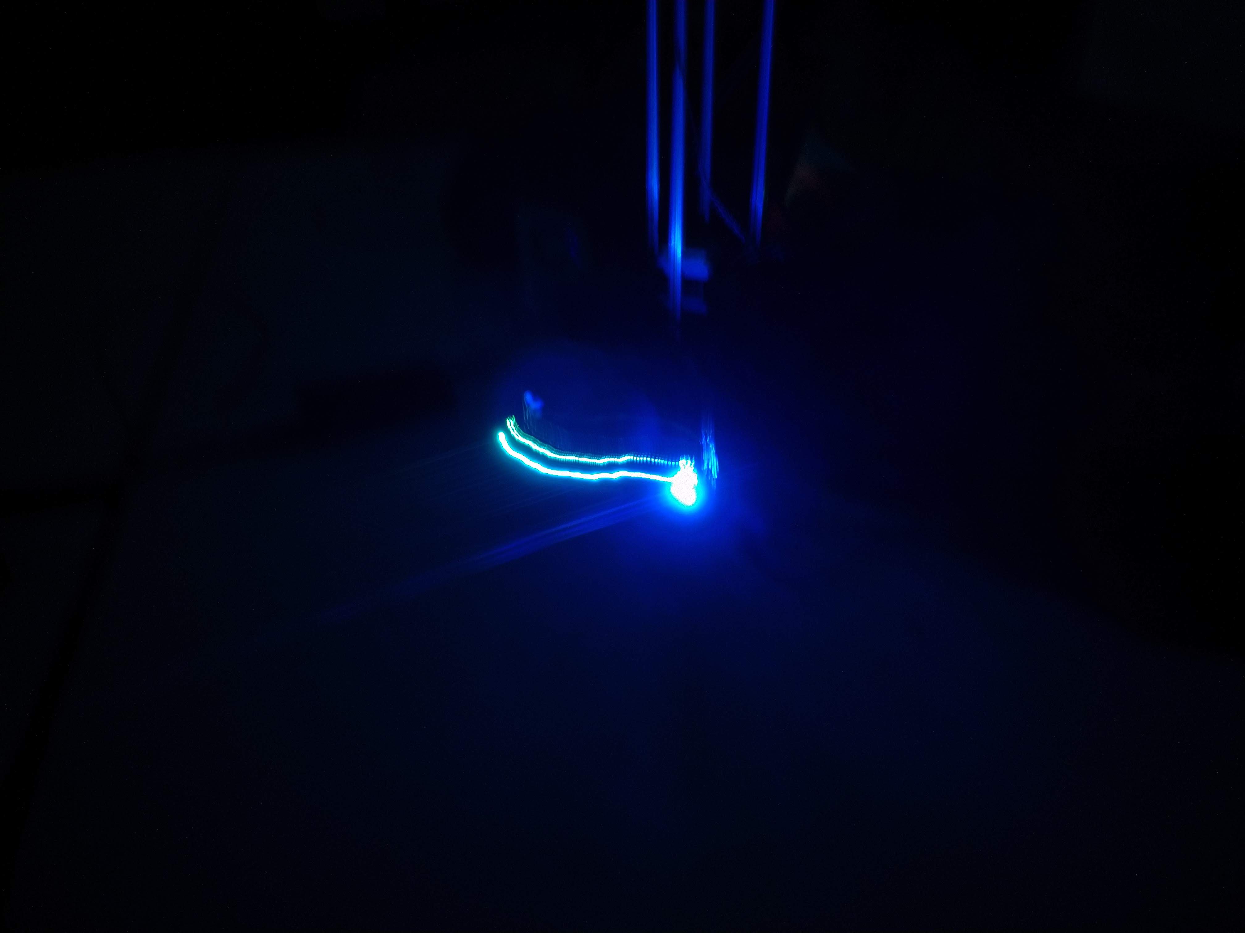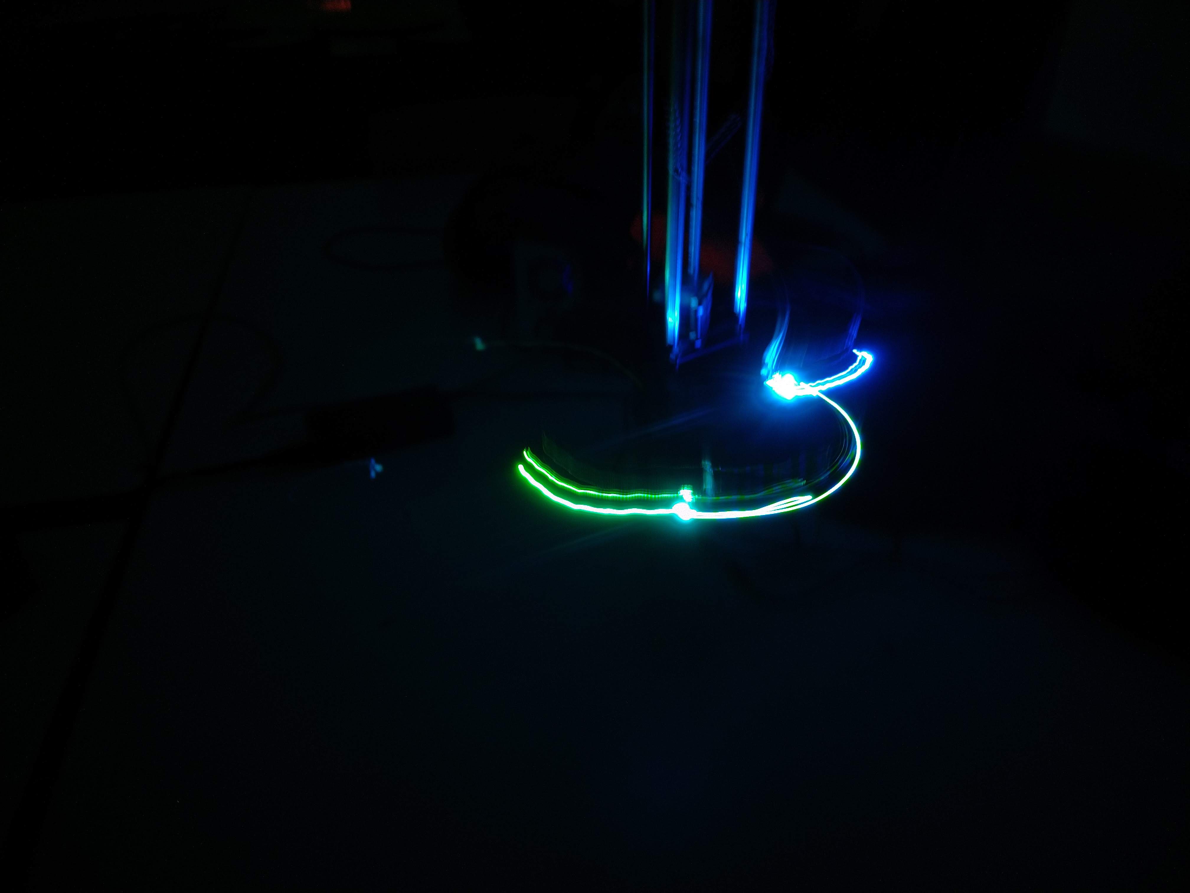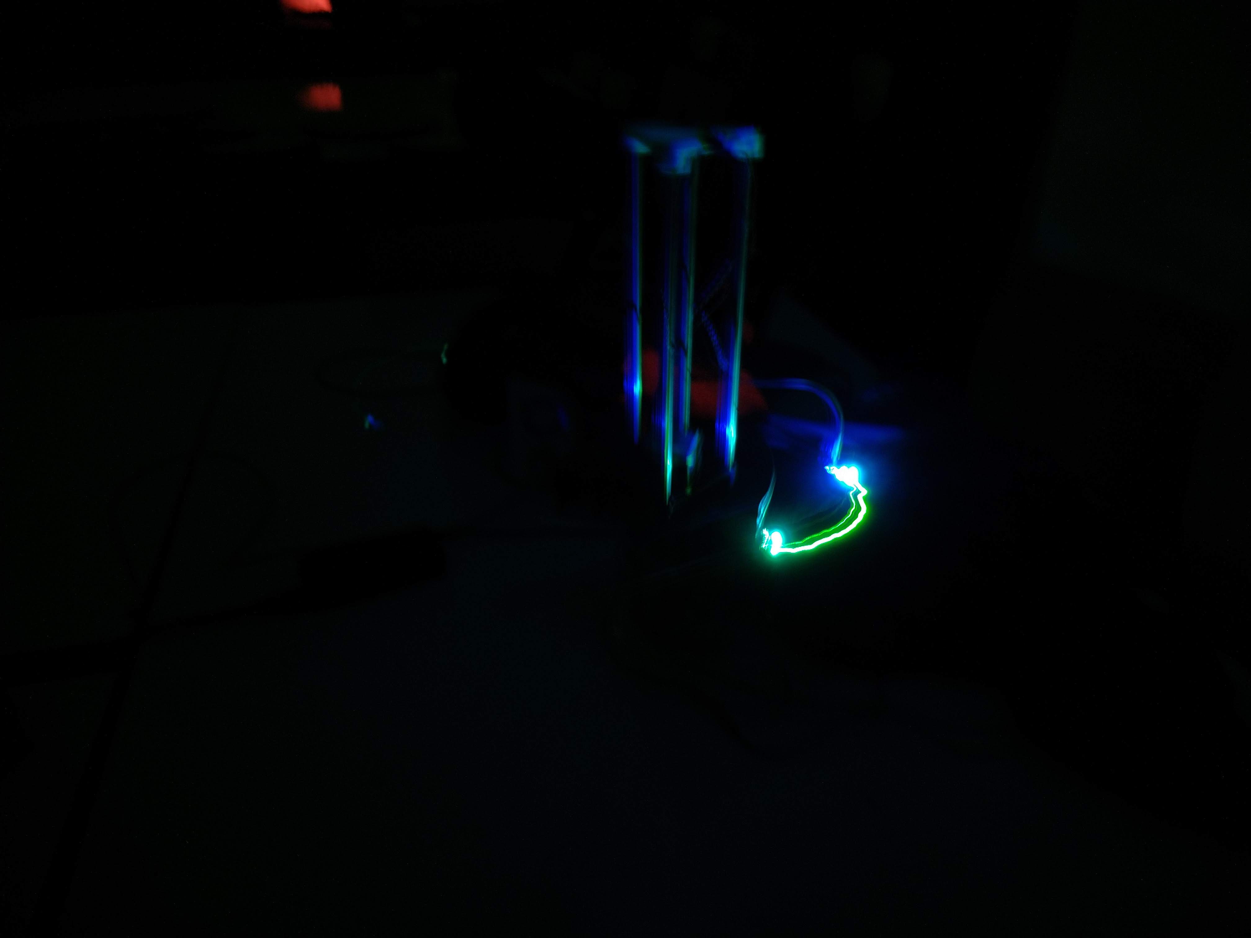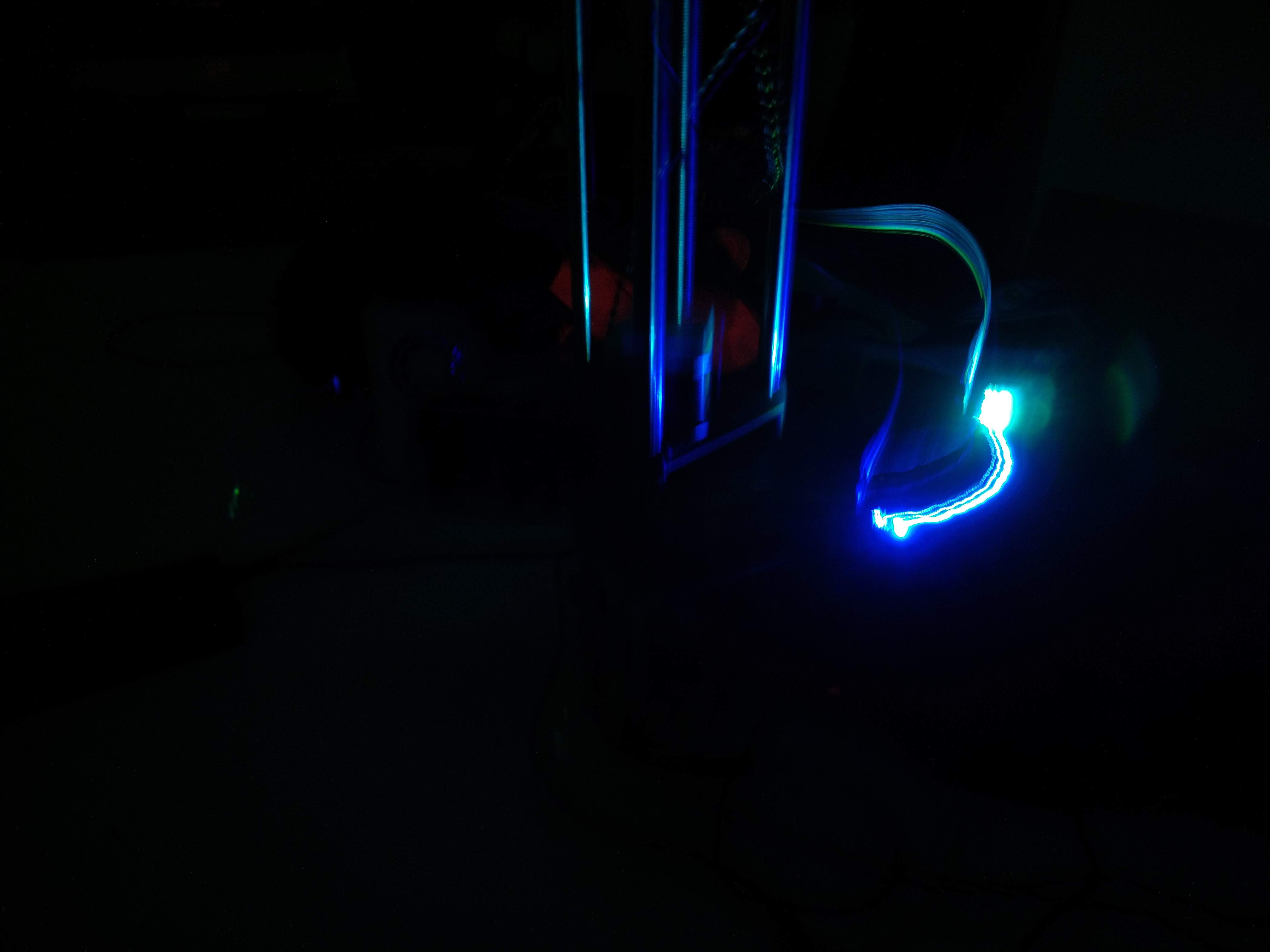 Another problem was that maybe the light would not be seen when the arm passes behing the tower, or if the LED holder hides the LED on some positions. One idea to solve this was to put the LED, extended with wires, at the end of the arm, while the controller board could be placed into the actuator piece near the tower. Another solution for that is to use all the faces of the actuator to hold different LEDs