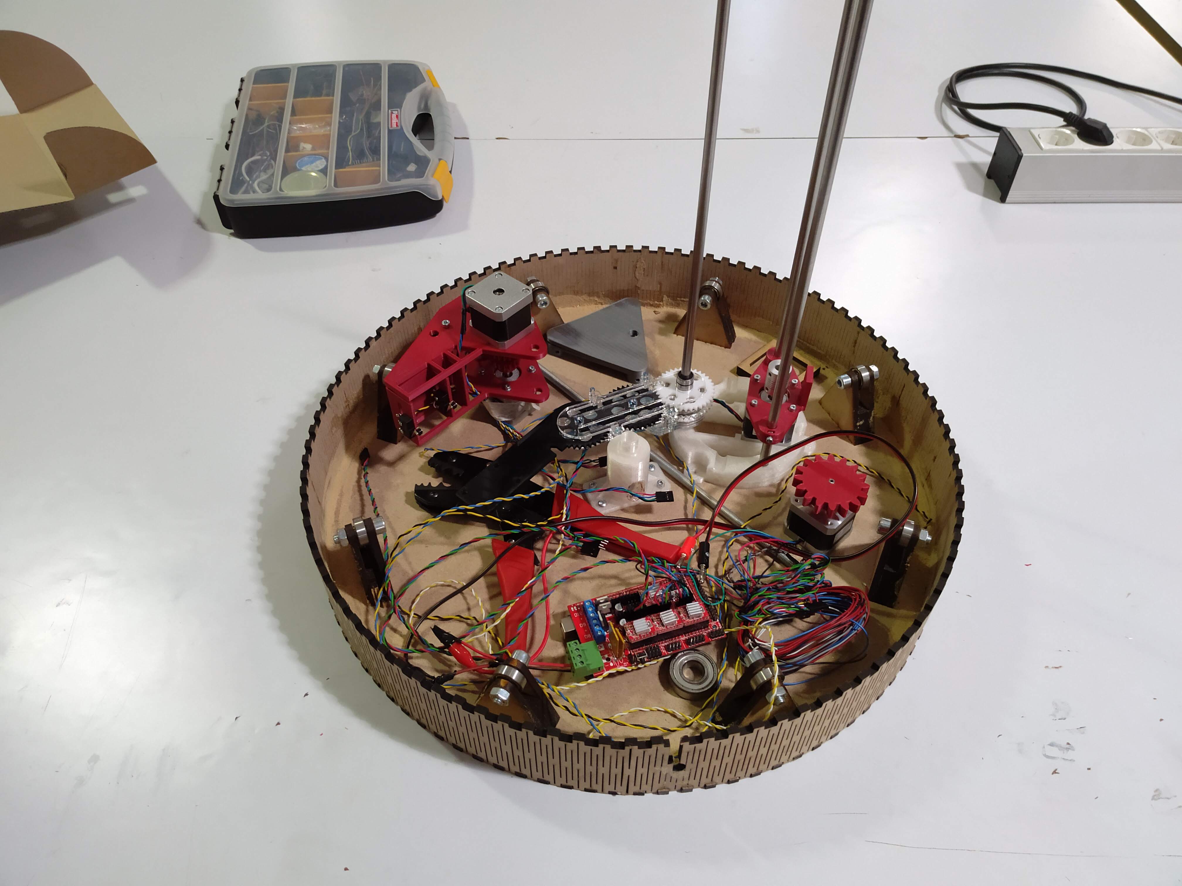 The processes followed to make the machine were 3D printing and lasercut: