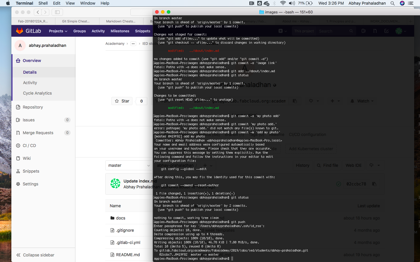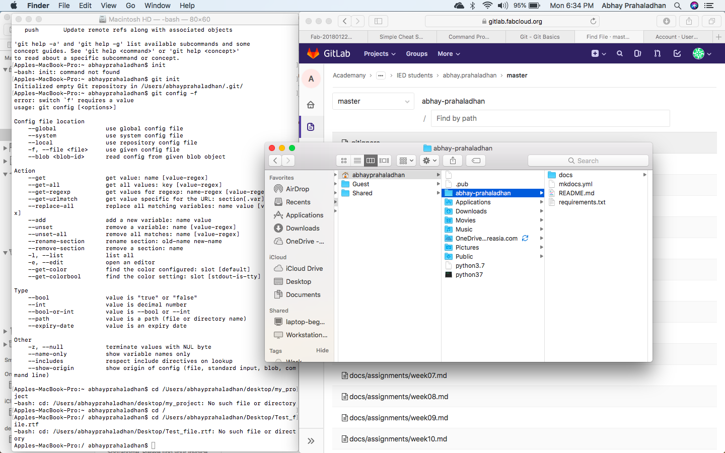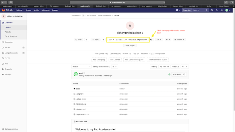 mkdir Fabacademy cd /Users/username/Fabacademy git clone git@gitlab.fabcloud.org:academany/fabacademy/2019/labs/ied/students/abhay-prahaladhan.git